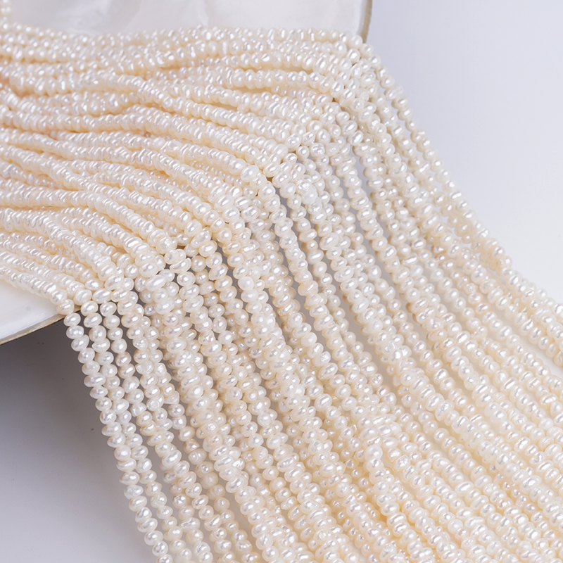 Fábrica de Cordão de Pérolas 3-3.5mm Cor Branca Cordão de Pérolas Botão Para Fabricação de Joias DK9762